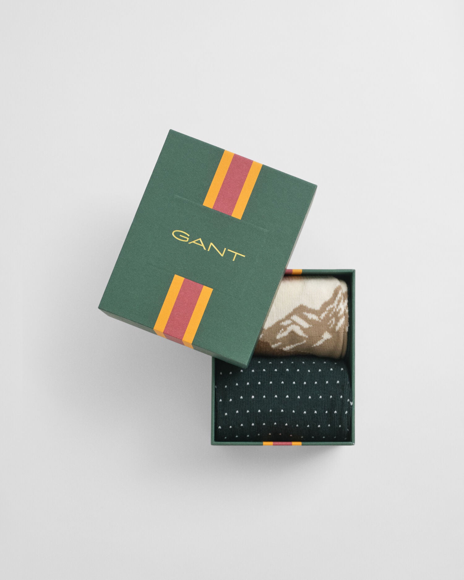 A great way to bring color and pattern to your outfits - these 2-pack socks feature one pair with a mini dot pattern and another with a scenic mountain illustration. Made of combed cotton, they are designed for a mid-calf height and feature a intarsia logo at the footbed.
