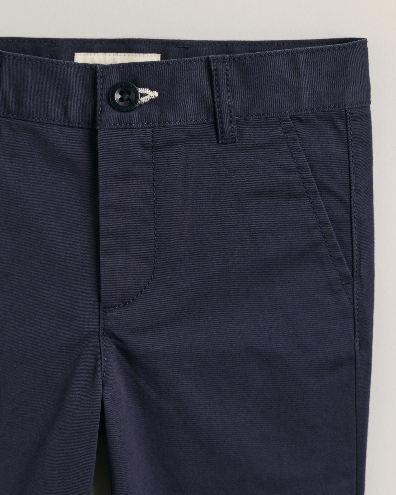 Made from cotton with a comfortable stretch, these play-friendly chinos are perfect for tiny adventures. They feature classic chino details and an elastic waistband for practicality.