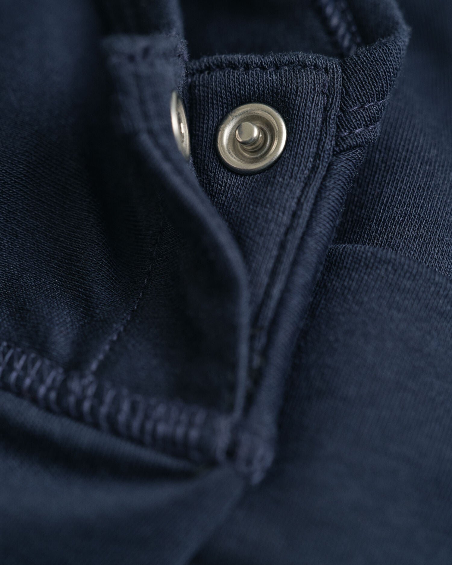 A perfect gift for the little ones, this unisex baby set features a bodysuit and beanie crafted in 100% organic cotton. Super soft, the bodysuit is designed for a regular fit with long sleeves and a crew neck. It is fastened with invisible snap buttons at the shoulder and double snap buttons at the crotch for easy on-and-off dressing. It features a cute, seasonal dog graphic printed at the chest whilst the beanie is detailed with a tonal logo embroidered at the center fold-up.