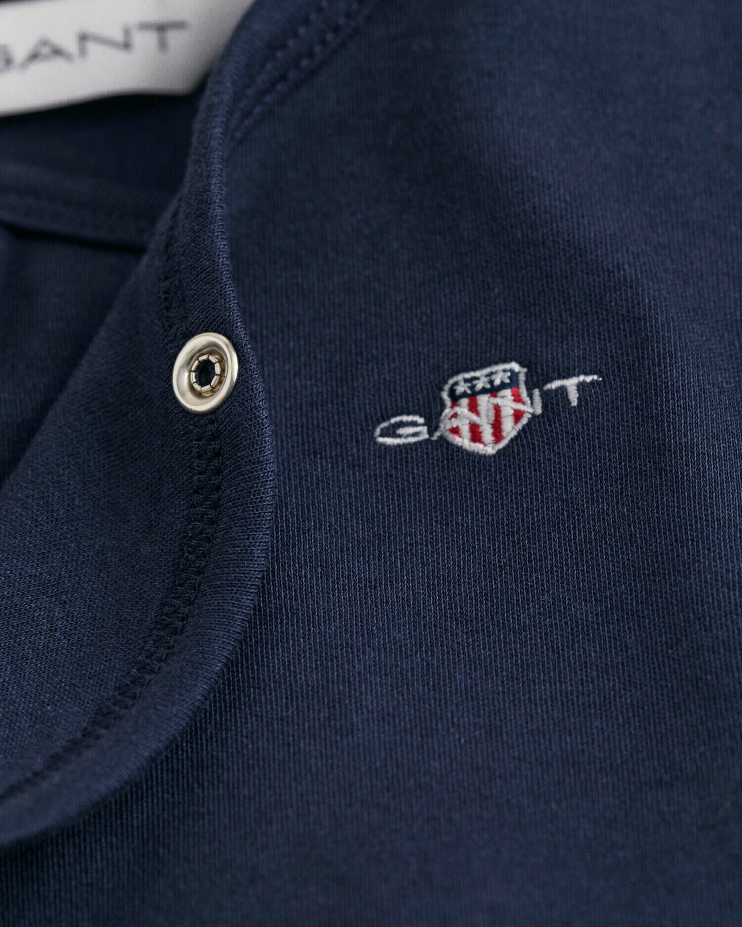 Crafted in 100% organic cotton, this wrapped bodysuit is perfect for your baby's every day. Featuring a small-scale shield graphic embroidered at the chest, it has snap buttons for easy on and off dressing, and long foldable sleeves for versatility.