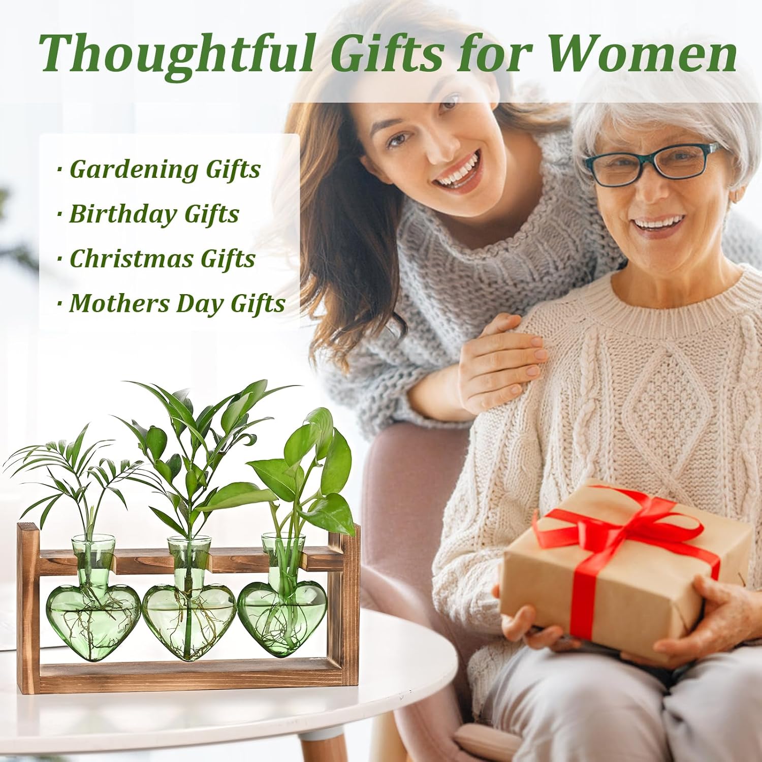 • Best Flower Lover gifts for Women: Constructed from durable solid wood and expertly crafted hand blown glass featuring assorted colored bulb designs, this propagation holder is both sturdy and aesthetically pleasing, making it perfect for daily use and ideal for planting cuttings. It makes a thoughtful gift for anyone, including men, women, girls, moms, friends, and teachers, and is suitable for occasions such as Mother’s Day, birthdays, housewarmings, Christmas, and graduation parties.