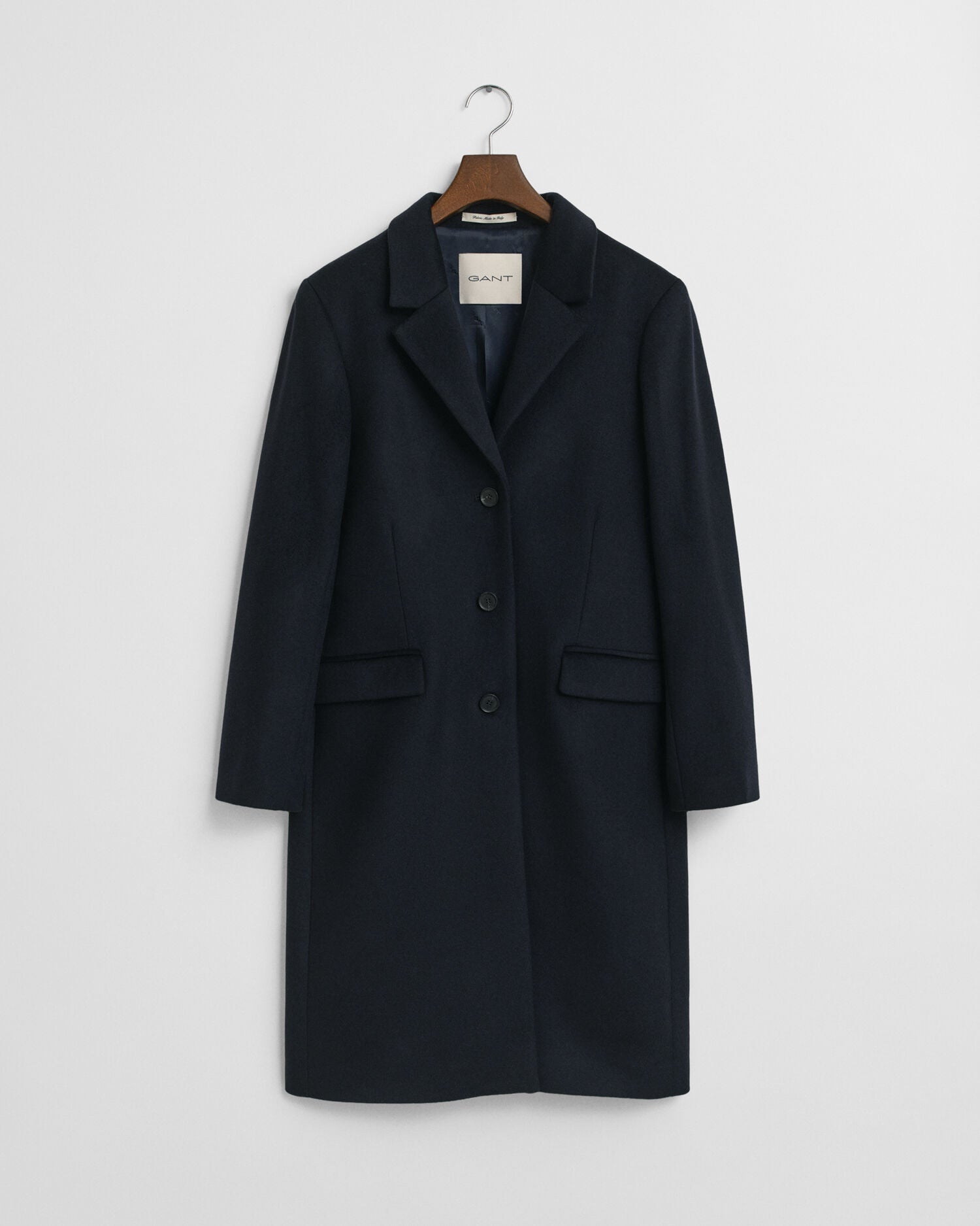 Every wardrobe needs a classic, tailored fit coat. Crafted in a premium Italian wool blend with a touch of cashmere, this coat has a supremely soft hand-feel. Single-breasted, this elecoat has a regular fit that finishes just below the knee. The lining is made from a certified viscose blend and features a branded jacquard pattern. This coat is designed with a notch collar and lapels, a high back slit, flap pockets, an interior pocket, and a 3-button closure at the front with imitation horn buttons.