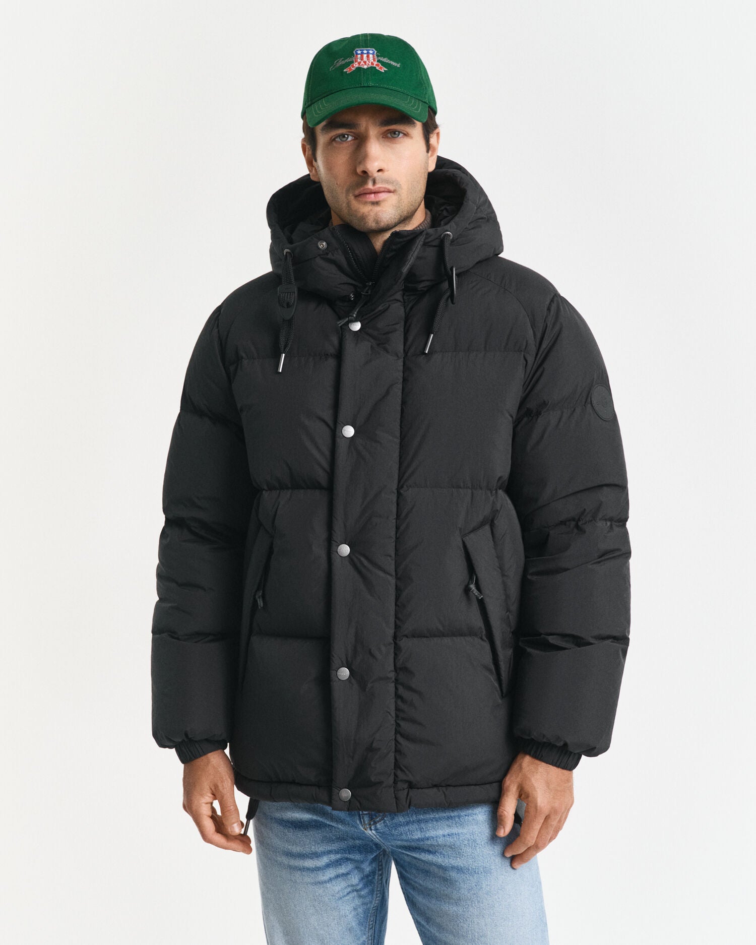 Crafted with a classic puffer jacket silhouette, this piece is an essential style for the winter months. Cut for a regular fit with a mid-thigh length, the design features front zip closure covered by the placket, side zip pockets and elasticated sleeve cuffs. The exterior design is further detailed with drawstring adjusters at the hood and hem and a classic locker loop, while the down interior is fully lined with one pocket.
