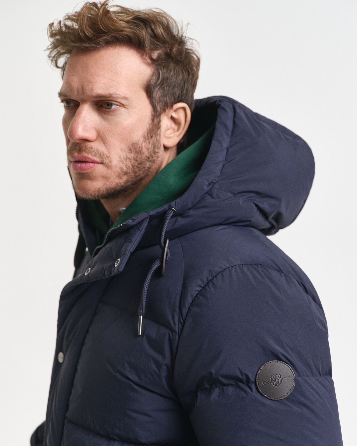 Crafted with a classic puffer jacket silhouette, this piece is an essential style for the winter months. Cut for a regular fit with a mid-thigh length, the design features front zip closure covered by the placket, side zip pockets and elasticated sleeve cuffs. The exterior design is further detailed with drawstring adjusters at the hood and hem and a classic locker loop, while the down interior is fully lined with one pocket.