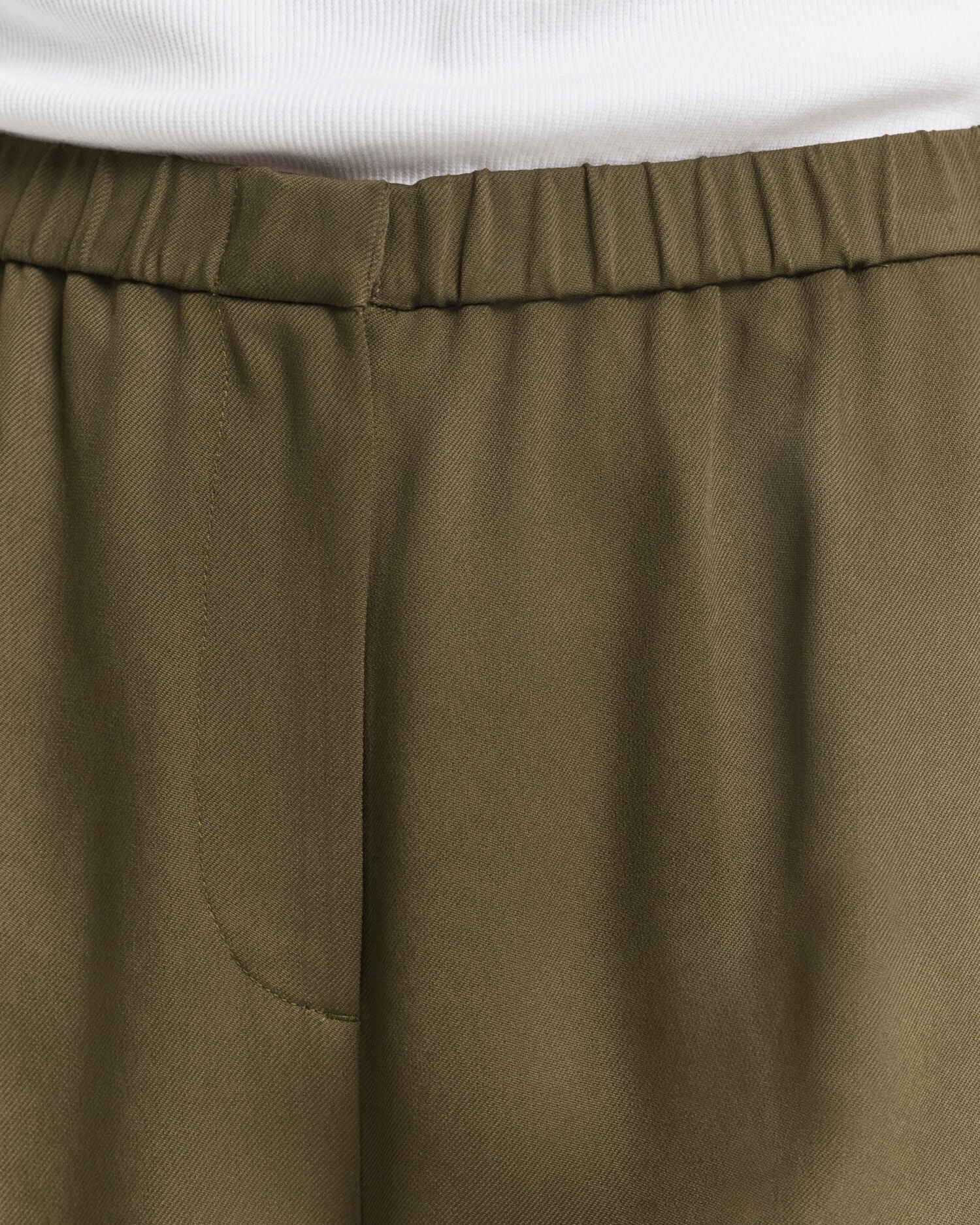 Made from a fluid viscose fabric, these pants offer plenty of comfort without sacrificing an inch of style. Perfect for the warmer seasons, they are designed with a relaxed fit, mid-rise waist and straight legged silhouette. The pants are further detailed with an elastic waistband, a sleek hidden front zipper, hook-and-bar closure and side seam pockets.