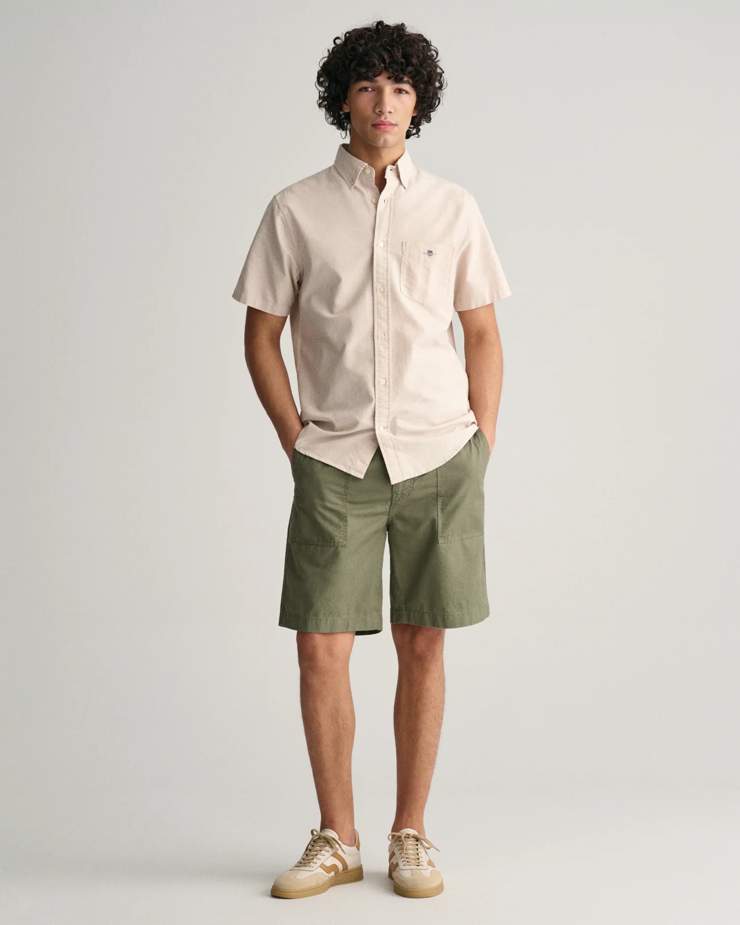 Crafted from a durable cotton, this Oxford shirt is a preppy essential. Cut for a regular fit, this shirt is designed with short sleeves for the warmer, summer months. It features a button-down collar, curved hem, a chest pocket with shield embroidery and a box pleat with a locker loop at the back.