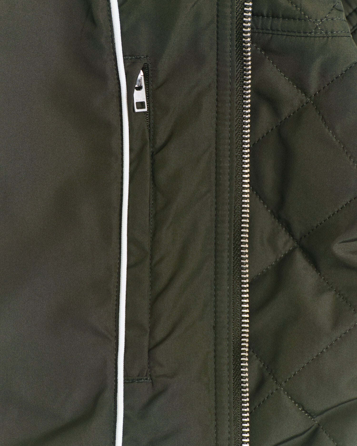 Crafted in a diamond quilting structure, this Quilted Windcheater Vest features recycled polyester padding and is treated with a water-repellent finish. Design details include a one-way zipper at the front, snap buttons at the collar, slanted welt side pockets and an elasticated hem and cuff with a press button adjuster. This windcheater vest features a Durable Water Repellent (DWR) treatment which will help to shed water in light weather conditions.
