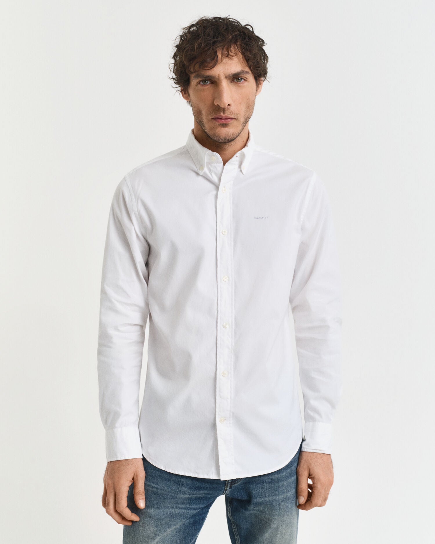 The perfect smart-casual piece, this pinpoint cotton Oxford shirt features a regular-fitting silhouette and a logo embroidered at the chest. It sports a button-down collar, adjustable cuffs, a curved hem and a box pleat with our signature locker loop at the back.