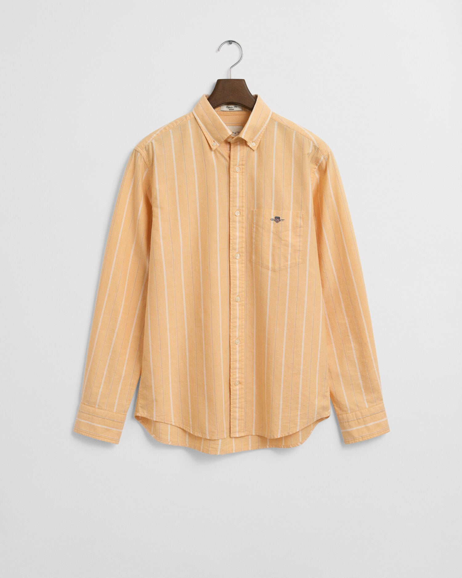 Versatile, foundational and smart-casual appropriate, this Classic Oxford Shirt is cut for a regular fit and features yarn-dyed stripes. Crafted from cotton, this shirt uses a soft Oxford weave fabric found in our shirting archives. It is detailed with a button-down collar, adjustable cuffs and a box pleat with our signature locker loop invention at the back. This shirt is complete with a subtle shield graphic embroidered at the chest pocket.