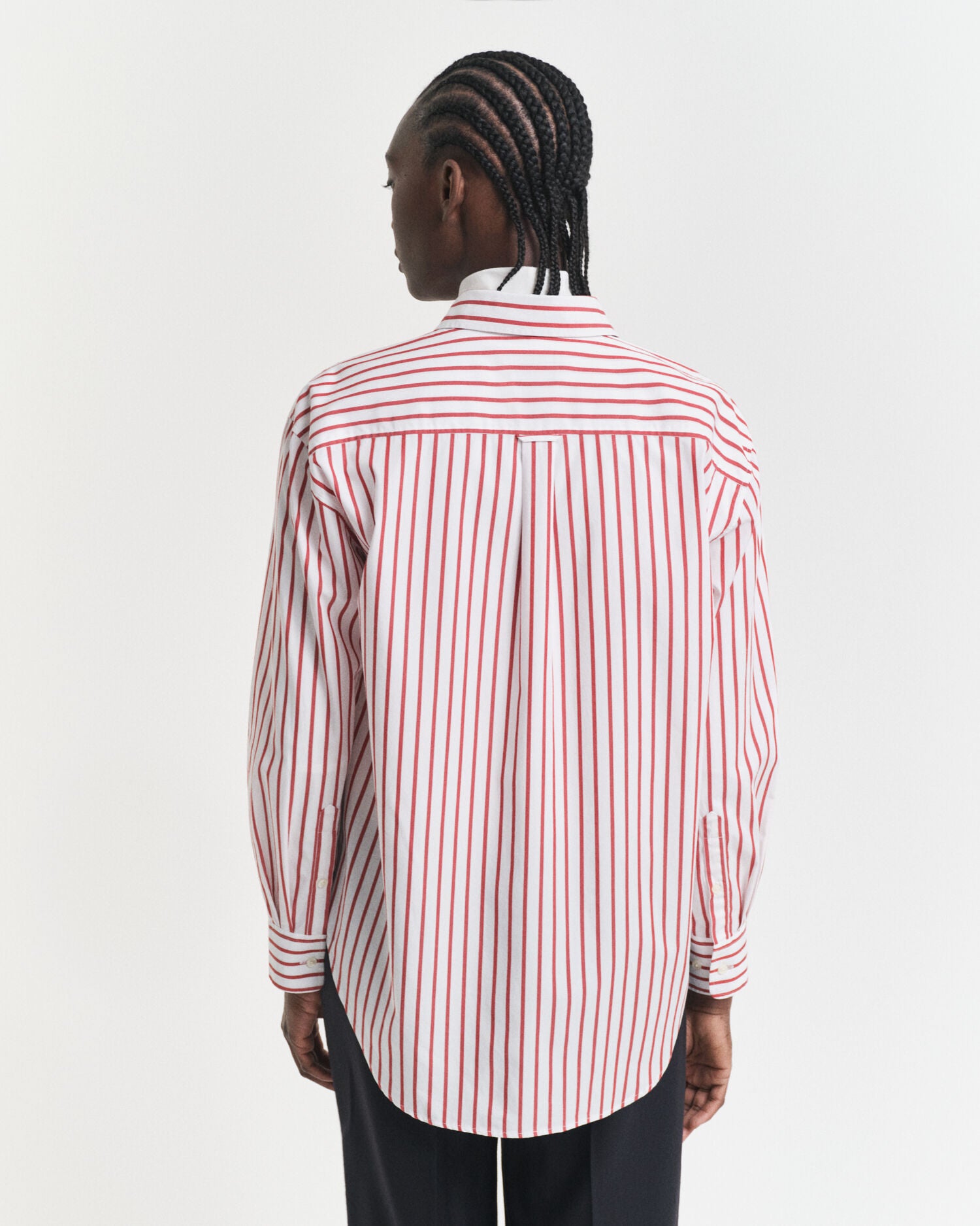Crafted in a washed cotton poplin fabric for a soft hand-feel, this shirt is designed with yarn-dyed stripes. Delivering a relaxed, smart-casual silhouette, it features a point collar, curved hem, chest pocket and a subtle logo embroidered at the sleeve. This garment is intended for a relaxed fit. For a closer fit, we recommend sizing down.