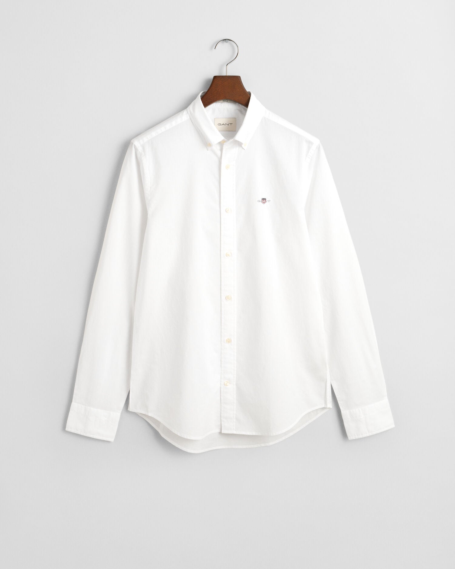 Crafted in a durable poplin weave, this classic shirt is essential to any preppy wardrobe. Cut for a slim fit, it features a button-down collar, curved hem and an '80s-inspired shield graphic embroidered at the chest.