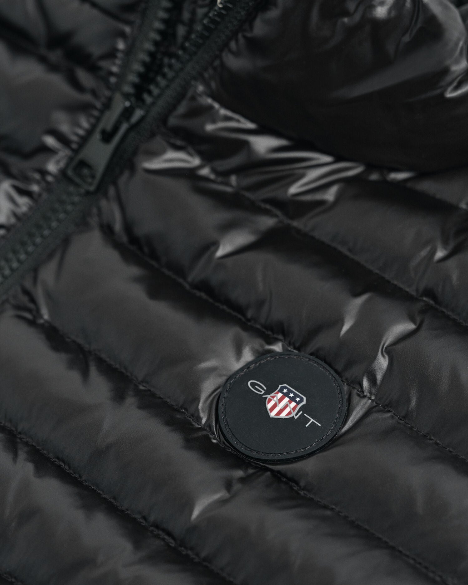 Designed for a sporty look with a shiny effect, this lightweight padded vest for teens adds warmth without the bulk, courtesy of its recycled synthetic padding. Made for a regular, unisex fit, it features horizontal quilting, a stand collar and a sleeveless design. Details include a water-repellent shell, a soft elastic hem, welt slanted pockets with invisible snap buttons and a front zip closure with a protective chin guard. It's complete with a branded rubber badge placed at the chest. This vest features a Durable Water Repellent (DWR) treatment which will help to shed water in light weather conditions. If you're unexpectedly caught in a downpour, please follow the care instructions closely to restore the performance and prolong the life of this garment.