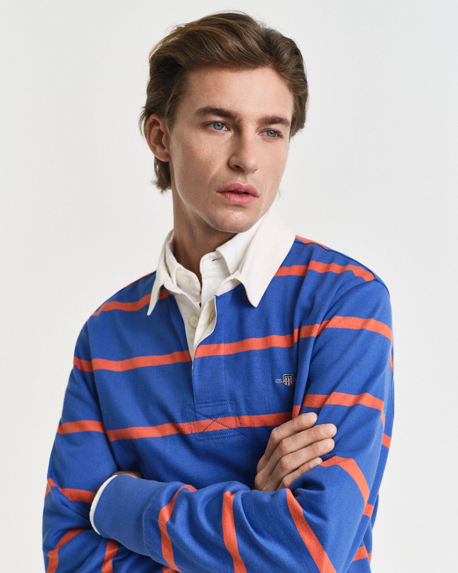 A preppy icon with roots in rugby, the Heavy Rugger's collegiate-cool feel is perfect for almost any occasion. Cut for a regular fit and garment-washed for a soft handfeel, this iteration sports a yarn-dyed stripe design. Crafted from 100% cotton, it features all the classic detailing: a twill collar, ribbed cuffs, a stitched placket with branded rubber buttons and side hem slits. It is finished with our iconic shield graphic embroidered at the chest and our signature locker loop at the back.