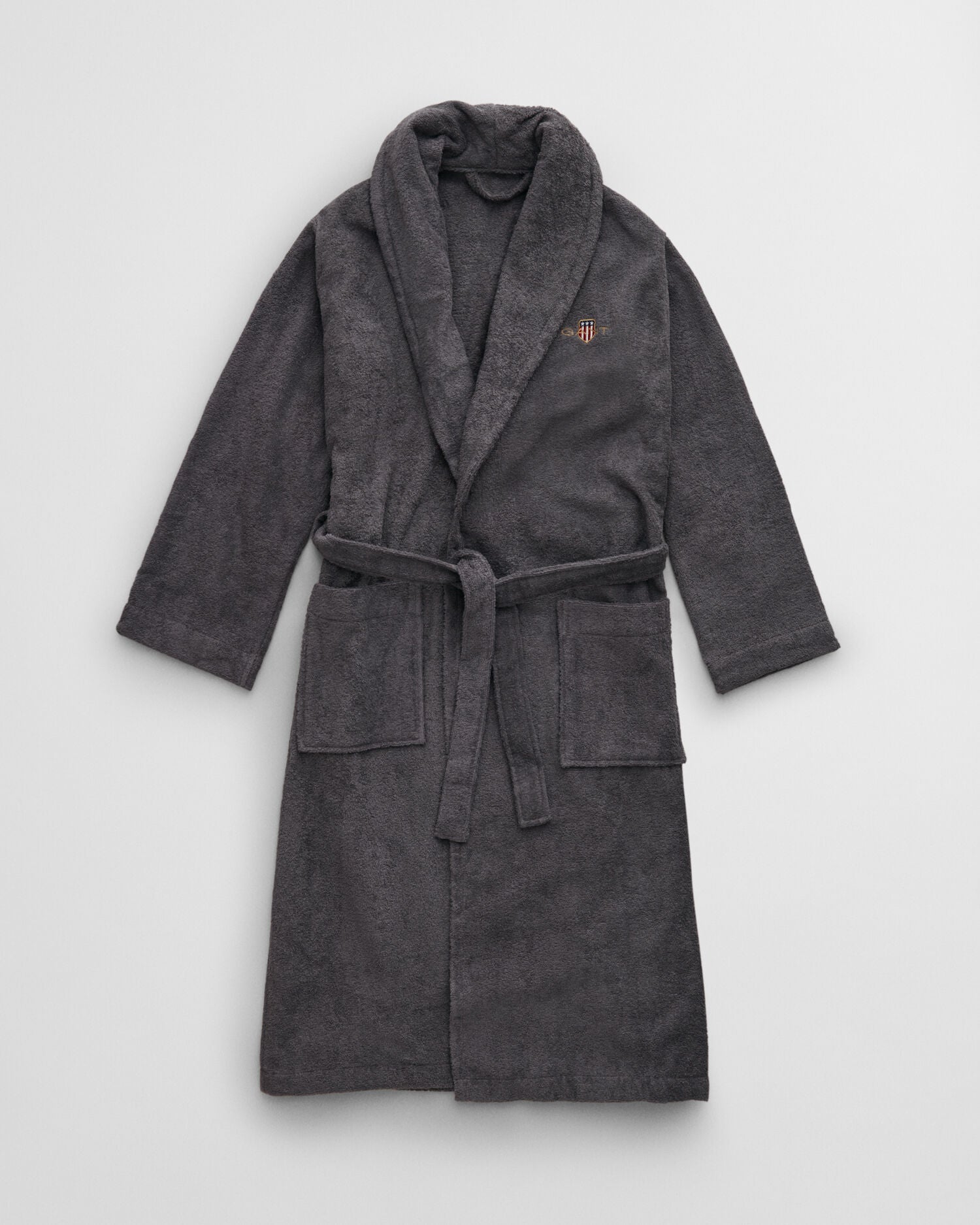 Make the most out of time spent at home with our Archive Shield robe. Crafted from 100% certified organic cotton, this terry cloth robe has a classic unisex fit and sports a thick collar, waist belt, and two front pockets. It is accented with our Archive Shield graphic embroidered at the chest.