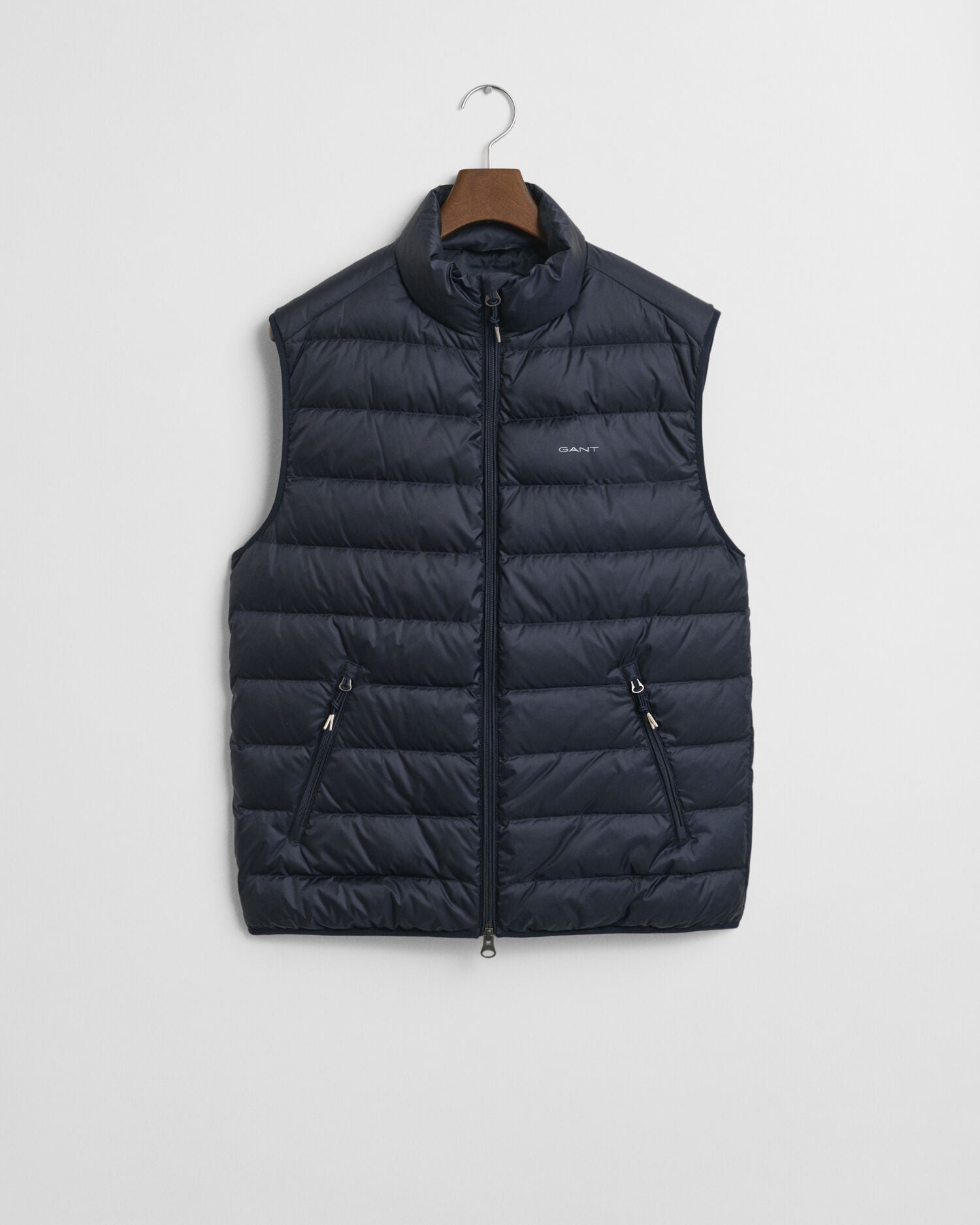 An easy, year-round layering piece with 90% down and 10% feathers, the Light Down Vest is made from super light and certified recycled polyester with a water-repellent finish. The piece has a regular fit and a length that sits above the hips, making it ideal to be worn alone over shirts or under heavier coats on colder days. A stand-up collar, angled welt pockets, a two-way zipper, and a rubber badge at the chest complete the piece. This vest features a Durable Water Repellent (DWR) treatment which will help to shed water in light weather conditions. It features a 650-fill-power down and has light insulation.