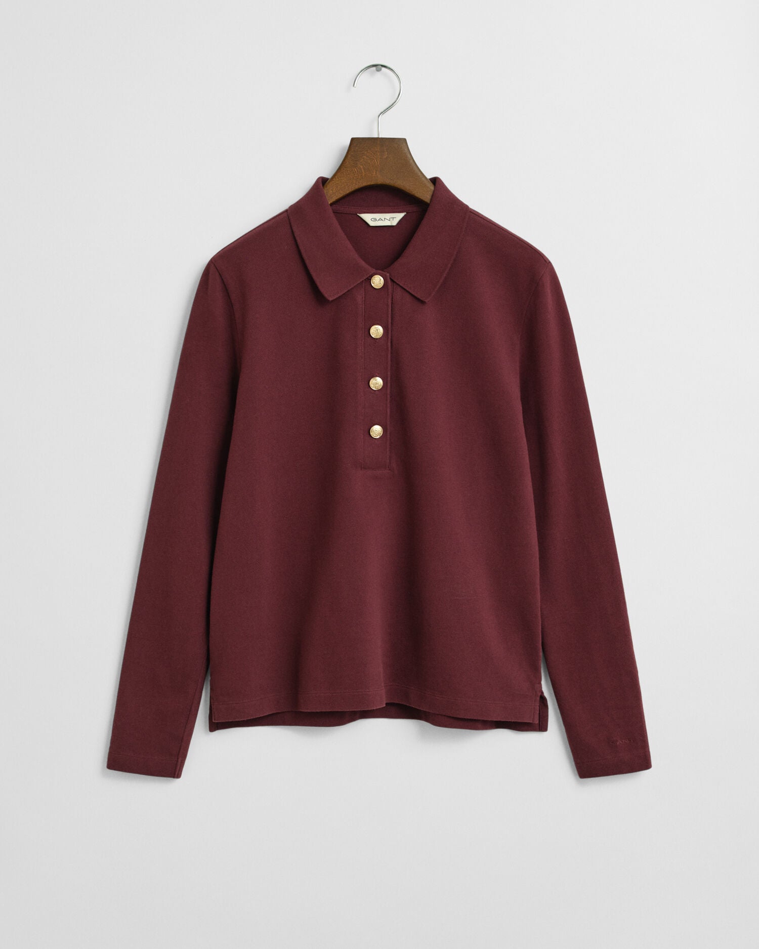 Crafted with a small piquestructure, this long-sleeved polo shirt is cut for a regular fit and features a classic polo collar. The design is detailed with branded gold-toned shank buttons, side slits and a logo embroidered at the sleeve.