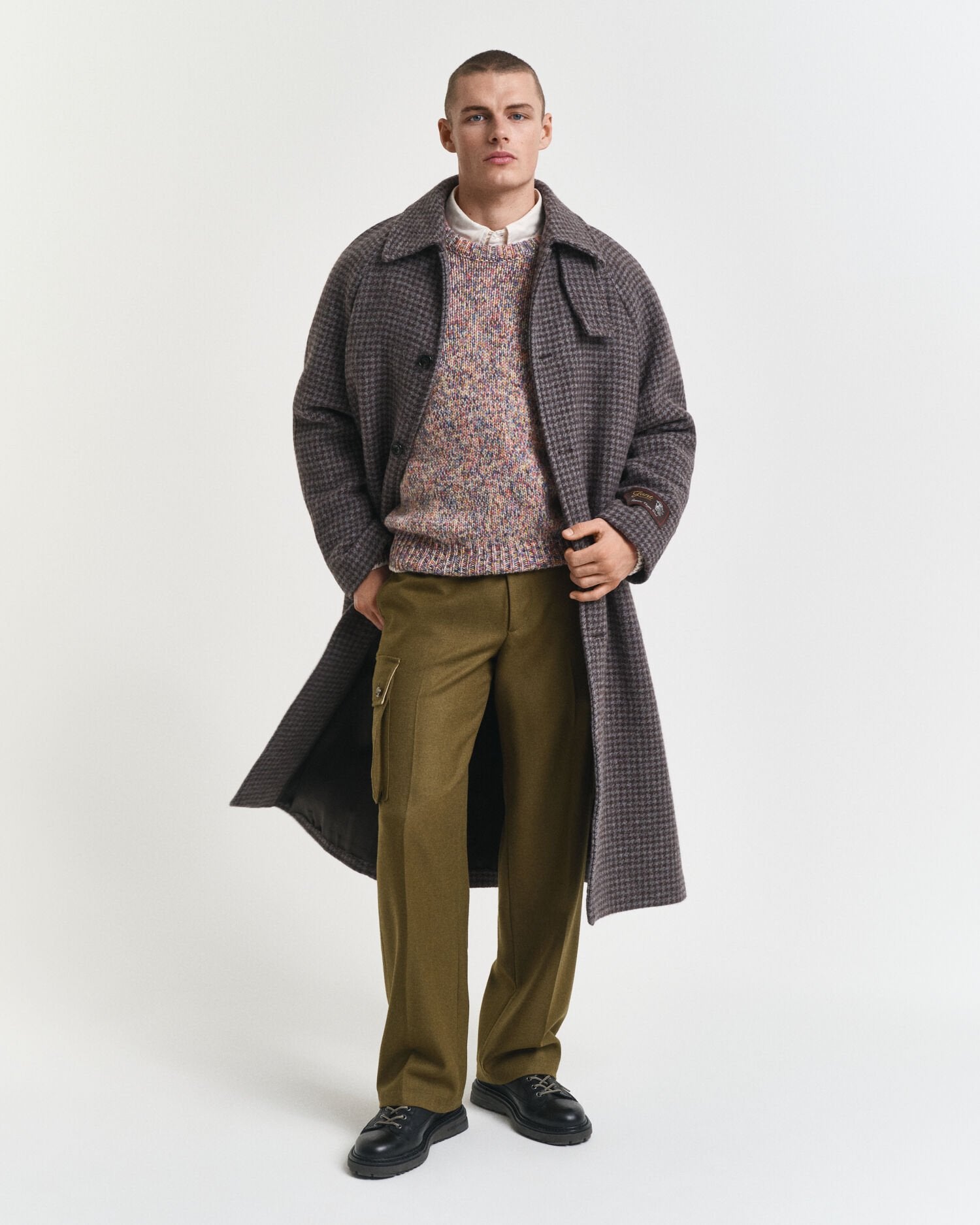This piece is part of our premium capsule collection: 240 Mulberry Street. The capsule honors our heritage as pioneers of American Sportswear by taking preppy classics and evolving them into new silhouettes made from the finest fabrics. This chunky-knit sweater is designed from 100% lambswool with vibrant, colorful yarns. Made for a relaxed fit, it features a crew neck, raglan sleeves and rib endings with additional stripe tip detailing. This garment is intended for a relaxed fit. For a closer fit, we recommend sizing down.