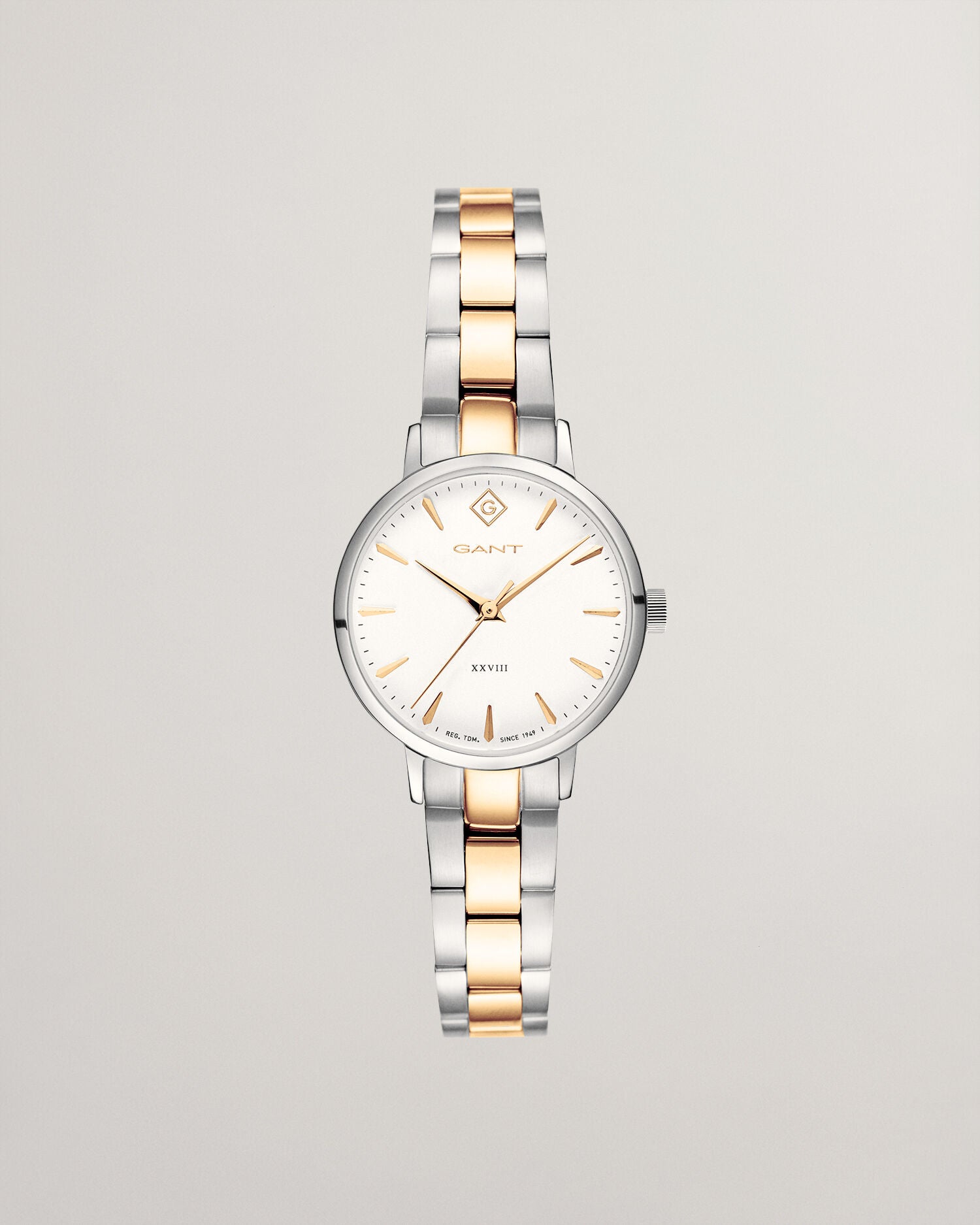 A watch is more than an accessory. Using luxe materials, we've crafted a women's collection in tribute to our history of iconic American sportswear. The Park Avenue 28 Wristwatch is made in stainless steel with gold ion plating and mineral glass, and features three hands for an understated, feminine look.