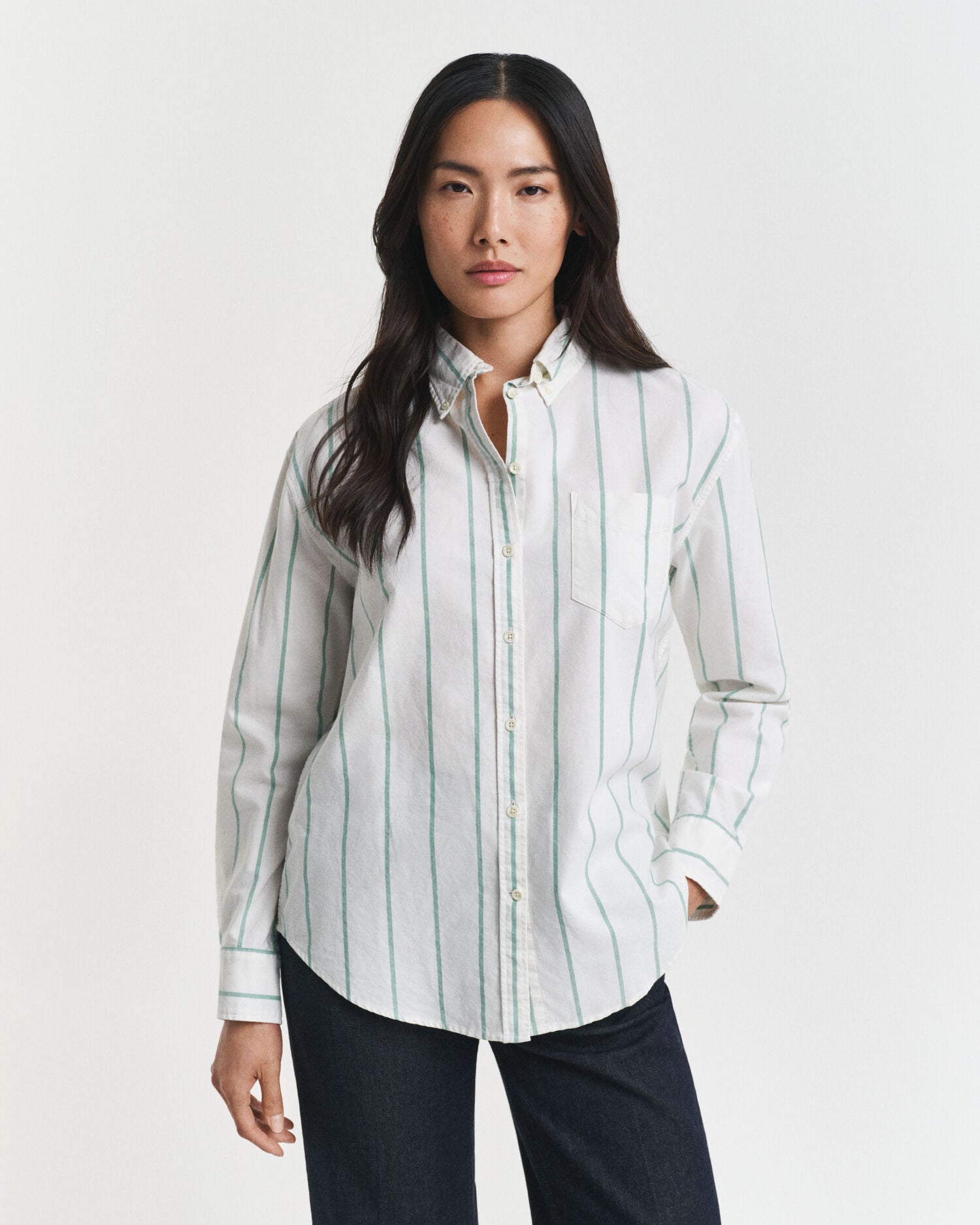 Versatile, foundational and smart-casual appropriate, the Classic Oxford Shirt has been crafted from certified cotton for a soft handfeel. Featuring an all-over striped print, this shirt is cut for a relaxed fit and features a button-down collar, a curved hem, adjustable cuffs, a chest pocket and a box pleat with our signature locker loop at the back. This garment is intended for a relaxed fit. For a closer fit, we recommend sizing down.