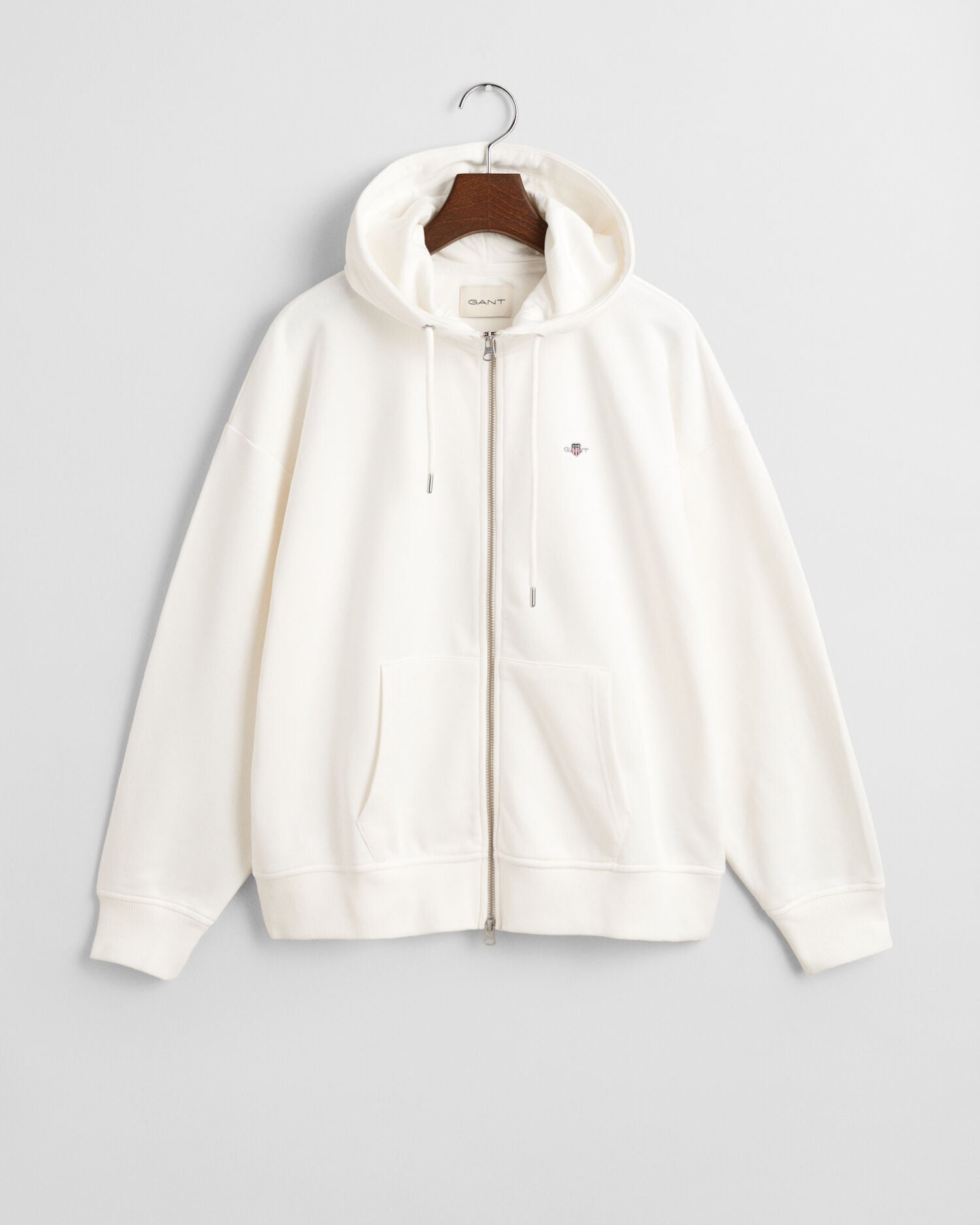 Featuring a small-scale shield graphic embroidered at the chest, this zip hoodie blends our preppy heritage with contemporary streetwear. Constructed in a soft cotton blend with a drawstring hood, front zip and patch pocket, this hoodie is made for wearing year-round. This garment is intended for a relaxed fit. For a closer fit, we recommend sizing down.