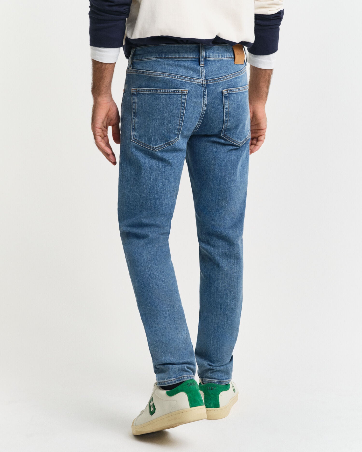 Designed in a clean indigo wash, these jeans are the perfect addition to any seasonal wardrobe. Cut for a slim fit, they have a mid-rise waist and a slim, tapered leg. Made with a classic 5-pocket design and zip fly front, these jeans feature branded shank buttons and rivets as well as a leather logo patch at the back waistband.