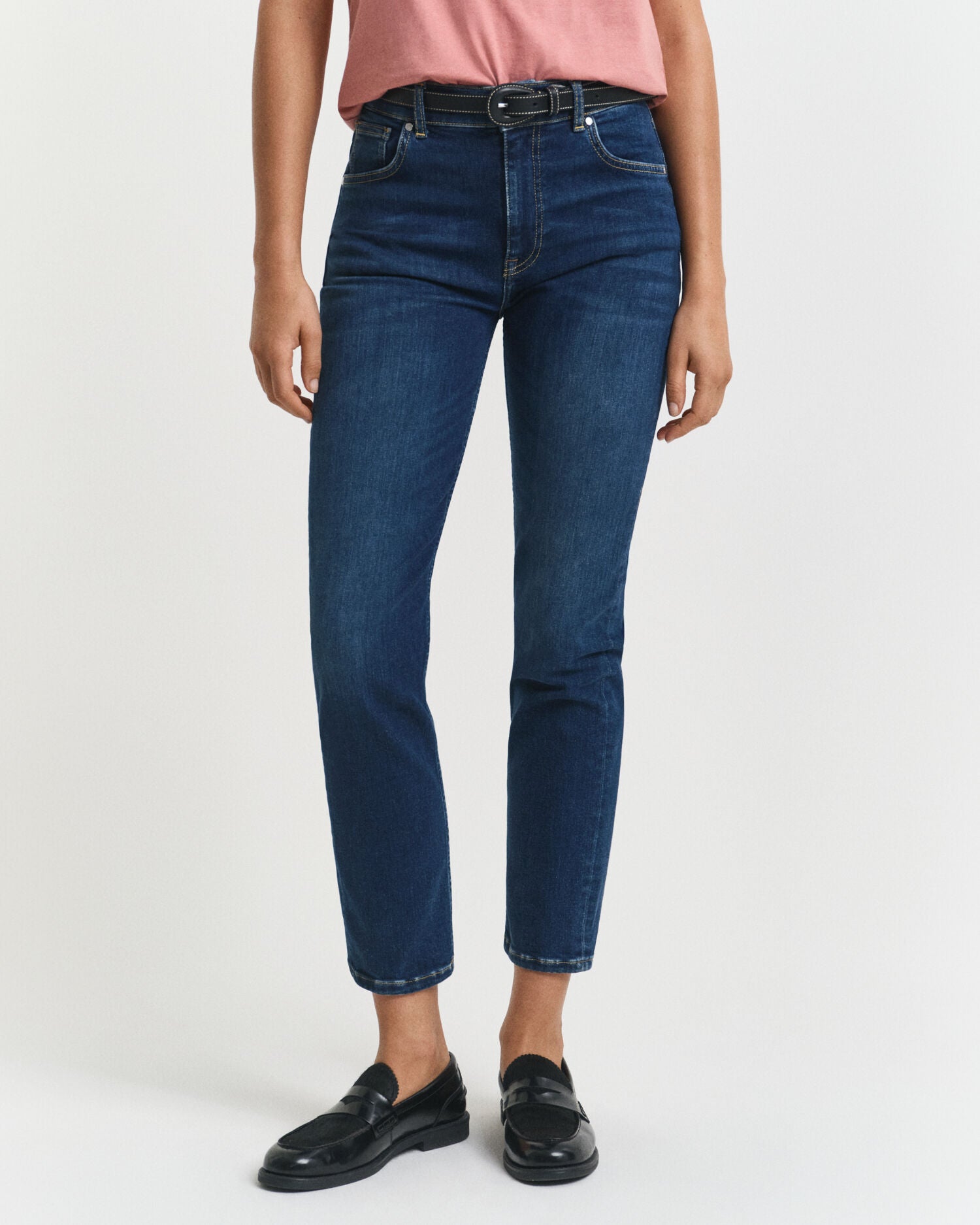 Crafted from cotton in an indigo wash, these jeans have a mid-rise, slim fit and cropped leg. Designed with high stretch for great recovery and comfort, they are suited for work days and weekends.