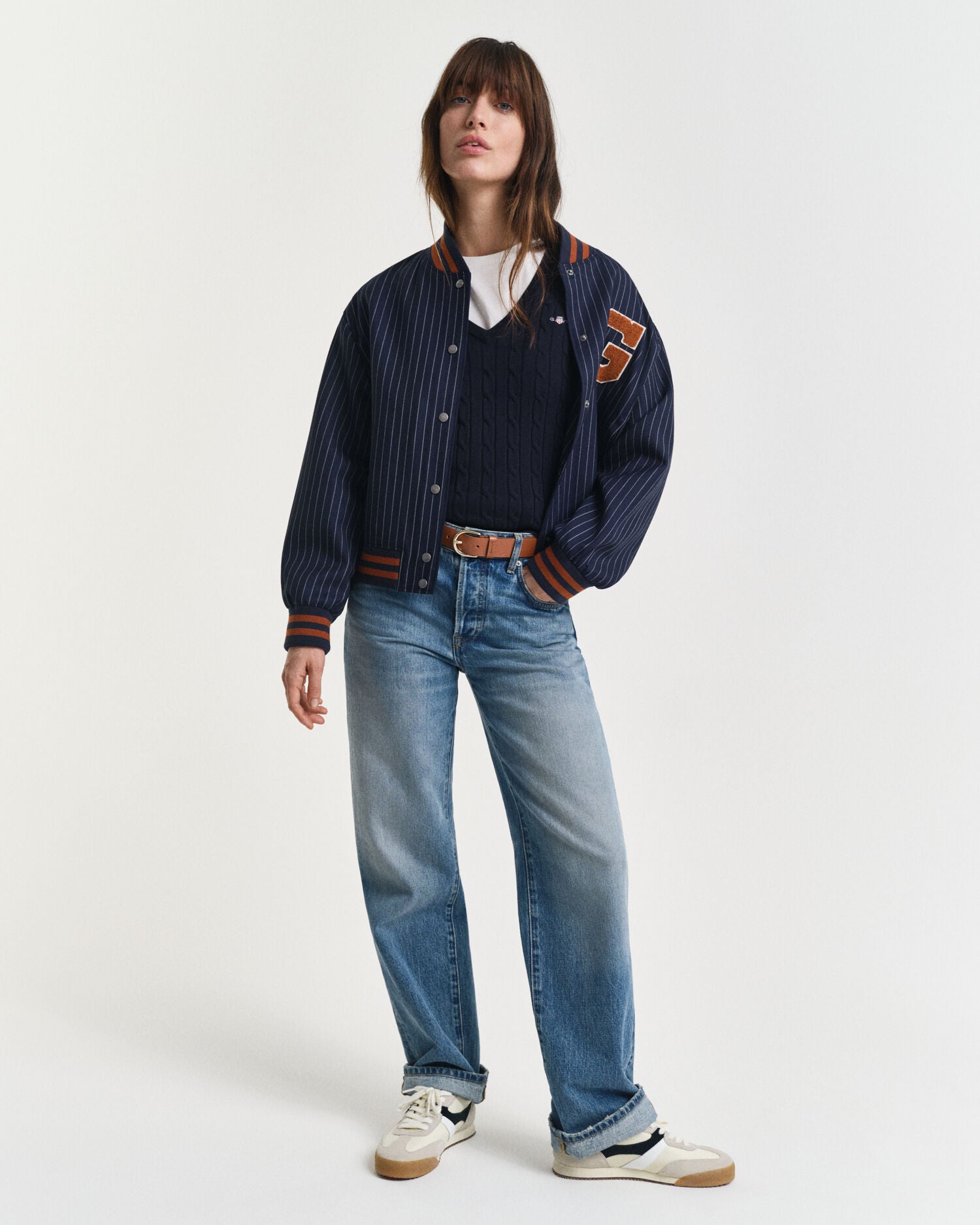 An American sportswear classic, the cable knit sweater has roots with the Aran Islands and Irish fisherman, but has been adored by everyone from Hollywood film stars to boarding school students around the world. Crafted from a soft cotton elastane blend for a slim yet stretchy fit, our version keeps it crisp and versatile with ribbed details, a V-neck, and our signature shield graphic embroidered at the chest. Plus, in a range of neutrals and vibrant seasonal hues, you can justify one in every color.