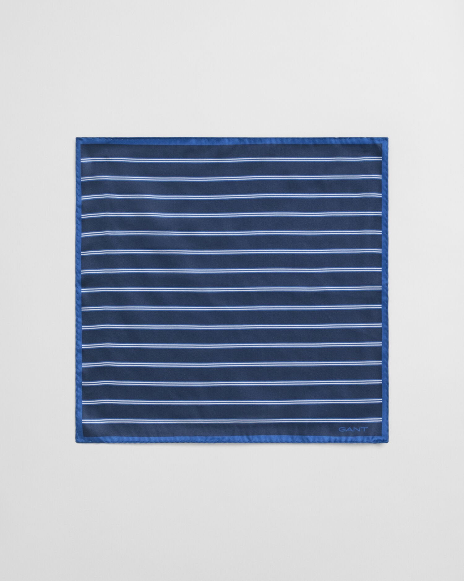 Crafted out of 100% silk, this pocket square has a contrast colored border and a logo printed at the corner. Each colorway features a unique and different striped design.